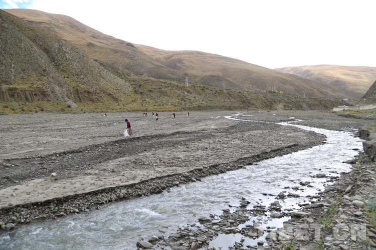 圖為瓊結(jié)縣瓊結(jié)鎮(zhèn)雪康社區(qū)群眾自發(fā)清理河道,守護一江碧水 攝影:曲杰