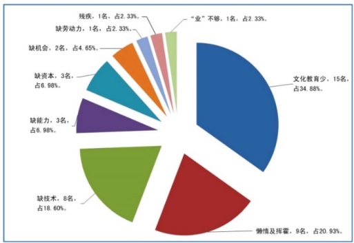 圖為114戶農(nóng)牧民對貧困根源首選項(xiàng)的結(jié)構(gòu)分布圖