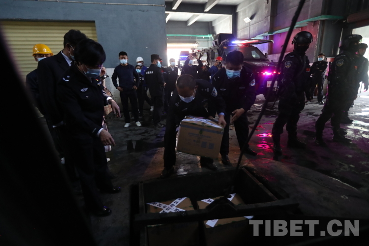活動(dòng)啟動(dòng)后,貼有封條的50箱毒品被公安廳反恐特偵總隊(duì)公安民警和禁毒總隊(duì)民警裝運(yùn)至曲水縣危廢處置中心采用無(wú)公害化技術(shù)焚燒銷(xiāo)毀。