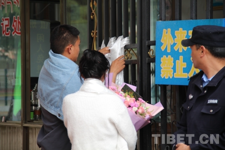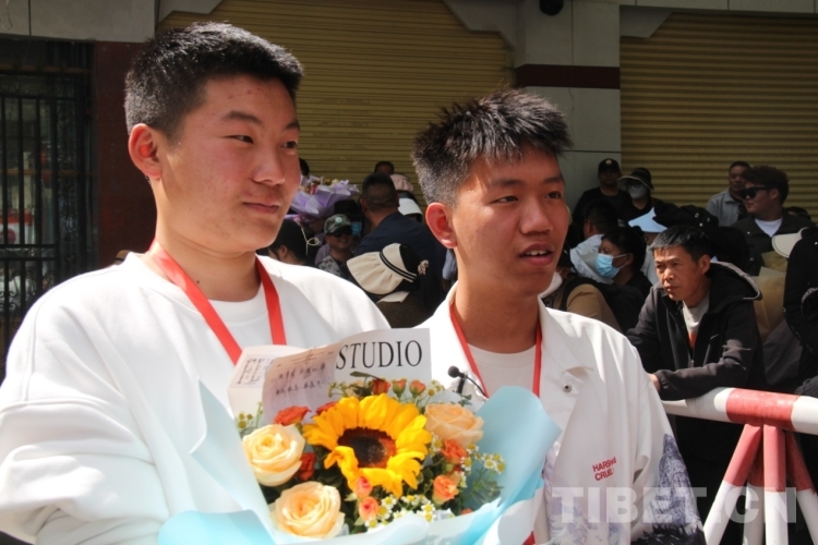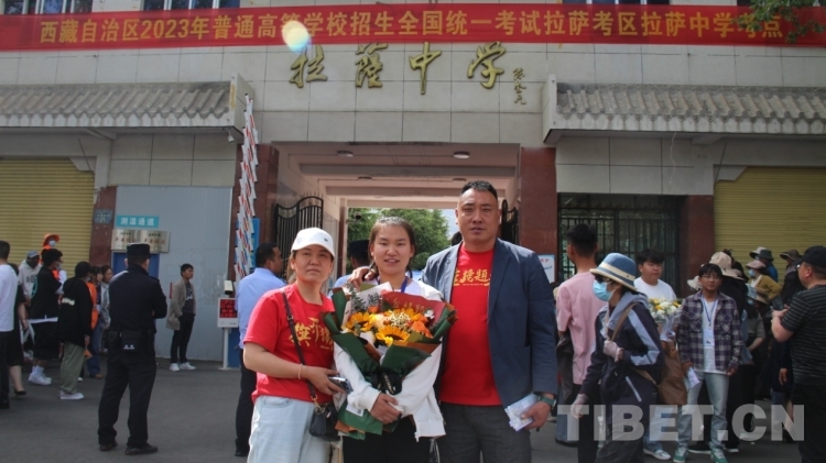 6月8日下午,在拉薩中學(xué)考場(chǎng)外,家長(zhǎng)們穿著藏裝、旗袍、印有“金榜題名”“旗開得勝”等加油短袖,手捧鮮花和哈達(dá)迎接第一波結(jié)束高考的考生?!敖裉欤|女終于要結(jié)束高中生活了,希望她能如愿考上軍校?!眲?span style="background-color: rgb(255,255,255)">先生夫婦穿著專門為女兒定制的加油短袖,備好鮮花到考場(chǎng)外迎接女兒。像他們一樣,考場(chǎng)外拿著鮮花與哈達(dá)、祝賀橫幅、勵(lì)志牌等的考生家屬和親戚漸漸多了起來。