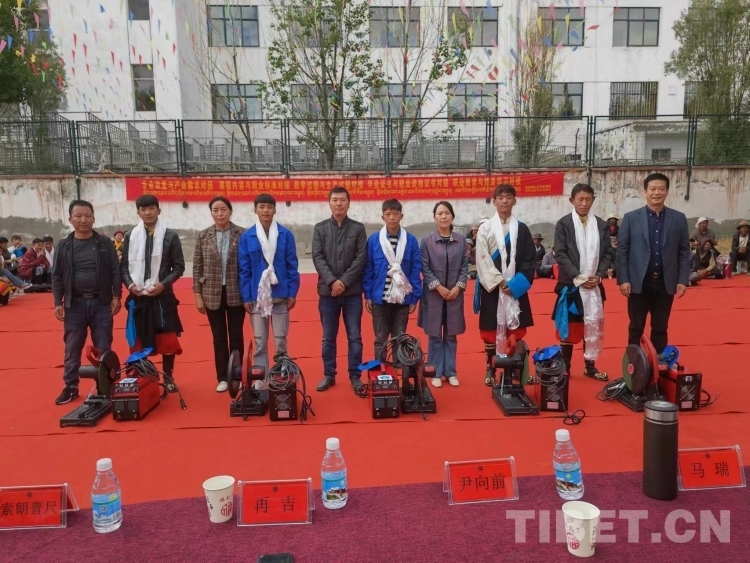 圖為學(xué)校為電焊專業(yè)的學(xué)生贈(zèng)送電焊工具