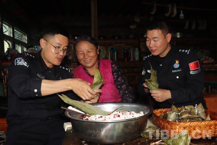 魯霞邊境派出所組織民警來到珍噶老人家中開展了“包暖心粽,過祥和節(jié)”活動。民警們在轄區(qū)珍噶老人的家中,與老人包粽子,忙得不亦樂乎,片片粽葉散發(fā)著清香,粒粒糯米寄托著濃濃警民情。