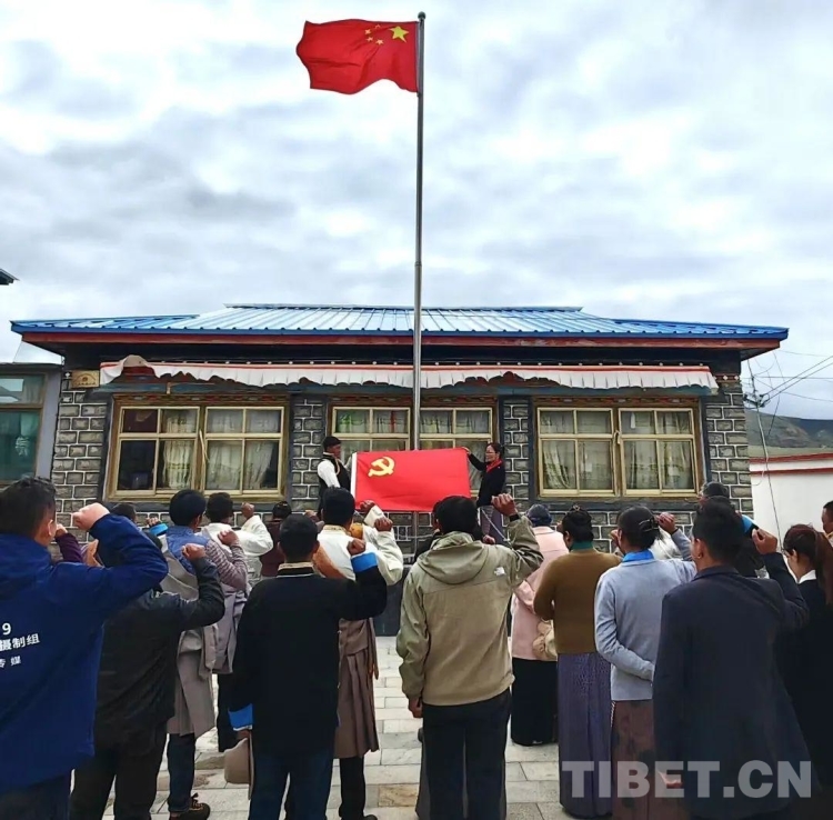 圖為帕里鎮(zhèn)一社區(qū)舉行升國(guó)旗儀式
