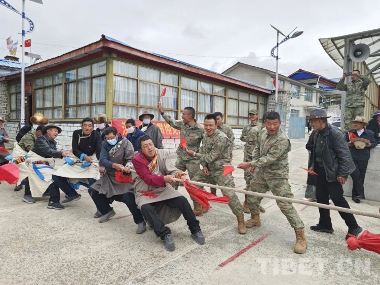 圖為帕里鎮(zhèn)二社區(qū)開(kāi)展慶“七一”拔河比賽