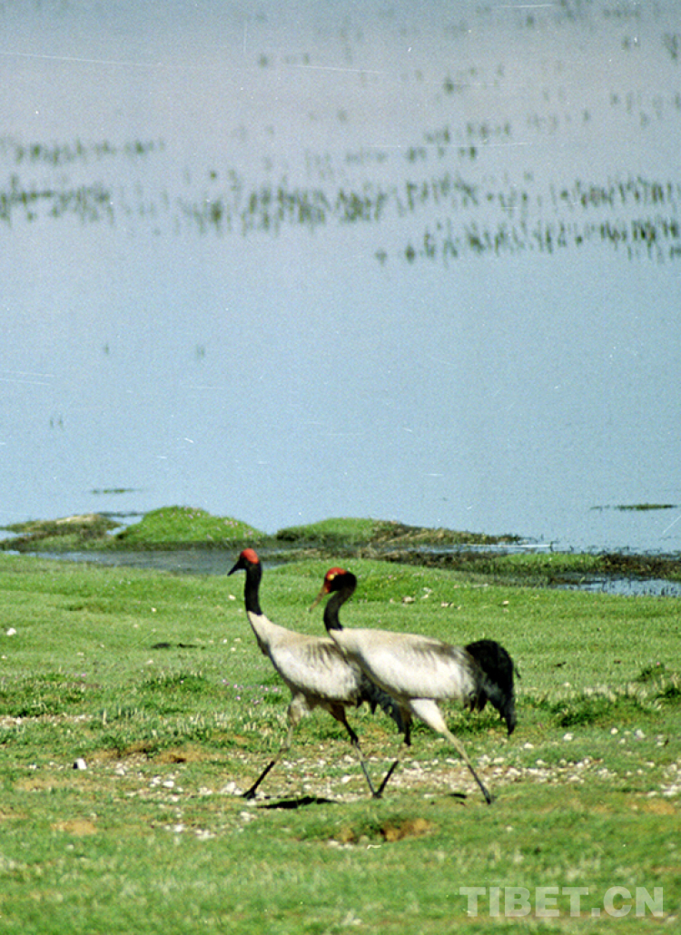 在藏北草原上漫步的國(guó)家一級(jí)保護(hù)動(dòng)物、被稱為”鳥(niǎo)類熊貓“的黑頸鶴(唐召明2001年攝)