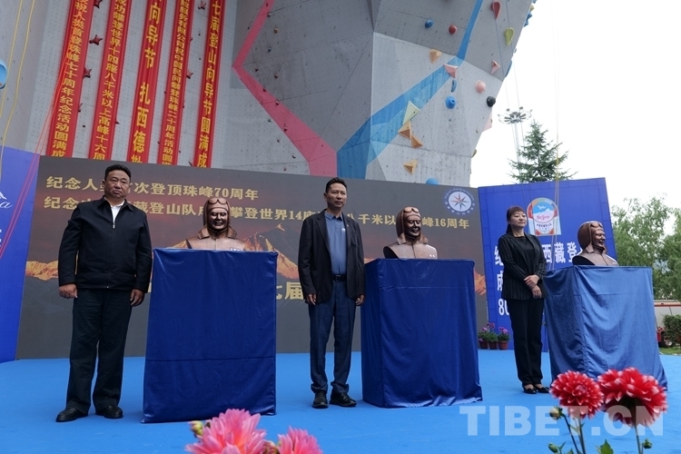 圖為開幕式現(xiàn)場為王富洲、貢布、屈銀華雕塑揭牌 由活動(dòng)主辦方供圖