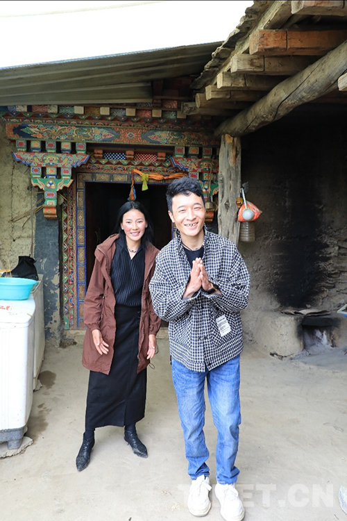 圖為索朗白巴和扎西巴姆在家門口迎接我們