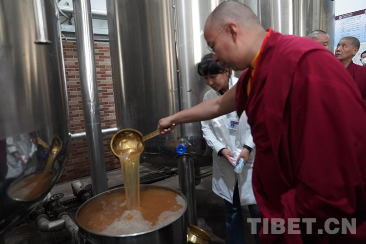 當(dāng)看到傳統(tǒng)醫(yī)學(xué)傳承及保護(hù)、整理和研究藏醫(yī)藥古文獻(xiàn)取得較好成果,班禪流露出滿意的笑容。對當(dāng)班的年輕醫(yī)護(hù)人員,班禪詢問了他們生話、學(xué)習(xí)、工作等情況,并鼓勵他們一定要以慈悲的心靈對待患者,在病房里,對患者們送去溫暖的關(guān)懷和撫慰、并給他們摸頂賜福。當(dāng)?shù)弥蒯t(yī)藥科研工作正走向健康軌道,一些藏藥專著在國內(nèi)外產(chǎn)生較大影響時(shí),班禪表示十分欣慰。