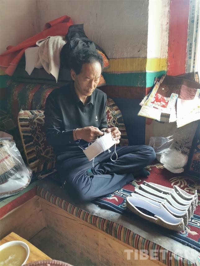圖為制靴匠人仁青江措正在手工制作