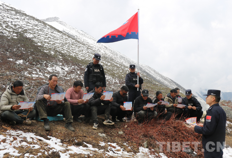 圖為林芝臥龍邊境派出所民警在蟲草采挖區(qū)為群眾宣傳法律知識(shí) 攝影:張正華