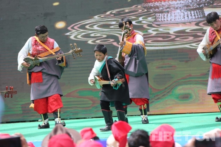 圖為多白鄉(xiāng)方隊入場時表演藏戲 攝影:王佳豪