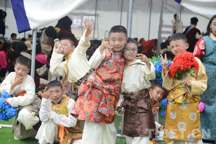圖為開幕式上穿著節(jié)日盛裝的小演員 攝影:旦曲