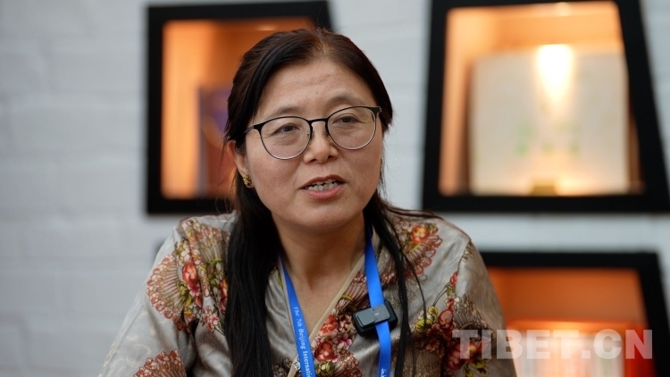 圖為擁措教授在第七屆北京國際藏學(xué)研討會(huì)上接受采訪 攝影:陳浩力