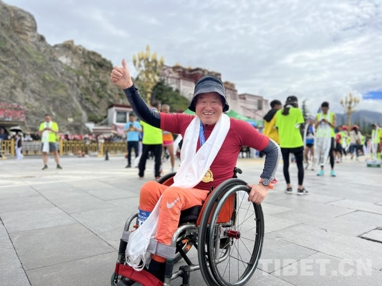 “馬拉松是一項極限運動,這里是海拔最高的馬拉松比賽,我是本屆比賽殘疾人運動員中歲數(shù)最大的。沿途的風景很美,后勤保障也做的很到位,希望有更多的殘疾人像我一樣走出來。”來自河南洛陽的殘疾人運動員商長斌今年61歲,完賽后他臉上洋溢著難以掩飾的笑容接來工作人員向他敬獻哈達和獎牌。