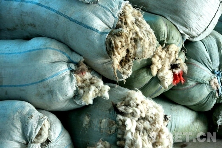 圖為在茶措村扶貧集體經(jīng)濟(jì)合作社倉庫內(nèi)擺放的羊毛 攝影:王佳豪