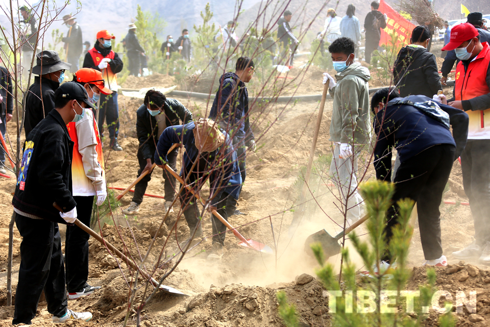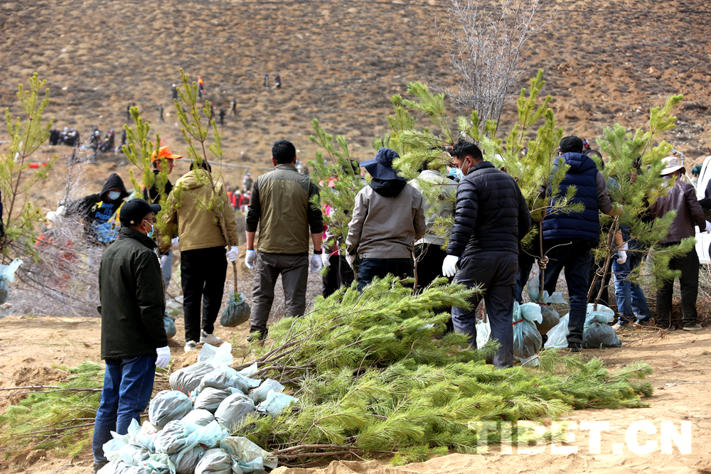 圖為拉薩干部群眾積極參與拉薩南北山綠化工程 攝影:王佳豪