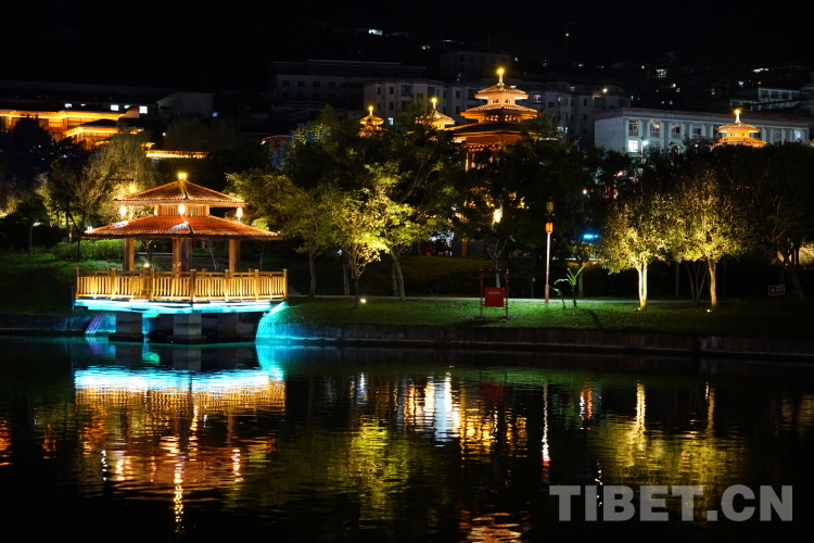 從福建援藏到廣東援藏,墨脫縣城的迅速發(fā)展離不開援藏兄弟省份不遠(yuǎn)千里深入喜馬拉雅腹地,走進(jìn)這朵圣地蓮花。蓮花圣地公園是每一個(gè)來墨脫縣旅游的人必打卡的地方,這里曾經(jīng)是一片沼澤地,在廣東省第七批援藏工作隊(duì)的規(guī)劃和建設(shè)下于2016年4月竣工,如今有湖泊、曲廊、涼亭、籃球場等齊全的基礎(chǔ)設(shè)施和園林景觀,成為了游客和當(dāng)?shù)厝诵蓍e的好去處。夜幕降臨,蓮花圣地公園內(nèi)的景觀燈倒映在湖泊當(dāng)中,一位來自四川的游客一邊拍照一邊和同行伙伴說“這里巴適得很?!?nbsp;
