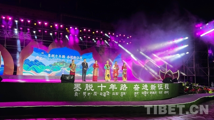 11月4日,墨脫通車十周年系列活動(dòng)之“墨脫十年路 奮進(jìn)新征程”文藝演出在墨脫縣好日子蓮花廣場(chǎng)舉行。來自墨脫縣各行各業(yè)的代表、當(dāng)?shù)鼐用褚约皝碜匀珖?guó)各地的游客齊聚這里,共同為墨脫通車十周年這一歷史性時(shí)刻慶祝。