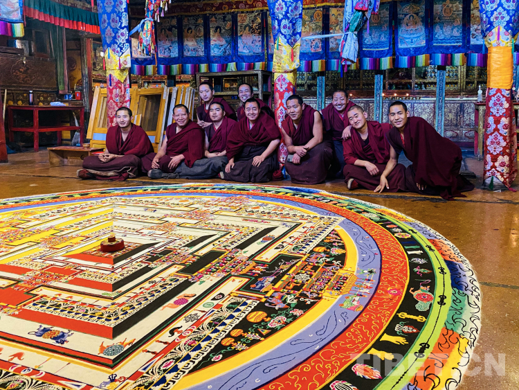 圖為扎實倫布寺時輪經(jīng)剛彩砂壇城及其繪制僧人 圖片由慈誠提供