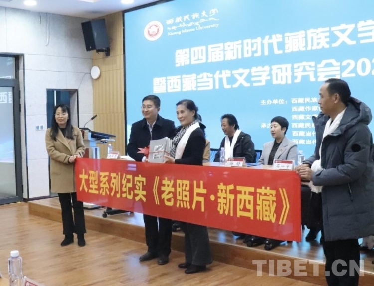 西藏民族大學(xué)校友、作家陳琳女士向西藏民族大學(xué)文學(xué)院贈送了她主編的6卷本大型系列紀(jì)實(shí)影像集《老照片·新西藏》。她表示,作為西藏文學(xué)的一名創(chuàng)作者,首先要思考為誰去寫、寫什么的問題,作家應(yīng)該堅持為人民而寫作的立場,堅持從民間和現(xiàn)實(shí)生活中汲取力量。