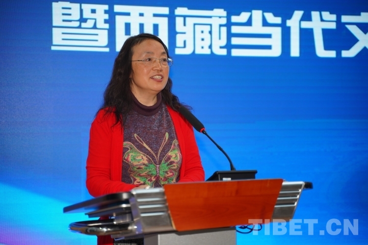 圖為西藏民族大學(xué)徐琴教授作主題發(fā)言