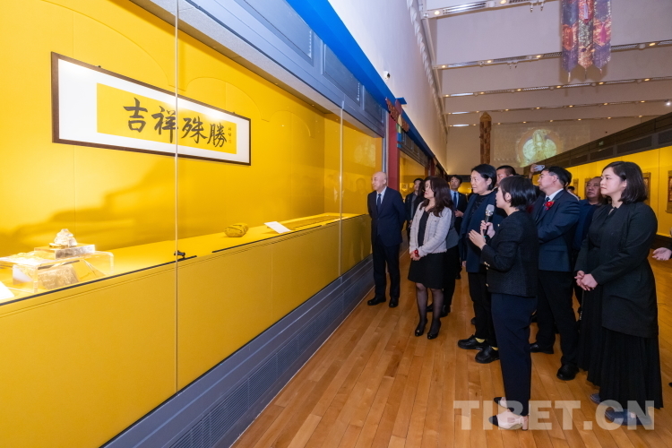 中國(guó)西藏網(wǎng)訊 12月15日,“吉祥殊勝——故宮與扎什倫布寺珍藏文物展”在澳門(mén)藝術(shù)博物館隆重開(kāi)幕。澳門(mén)特別行政區(qū)政府社會(huì)文化司司長(zhǎng)代表、社會(huì)文化司司長(zhǎng)辦公室主任何鈺珊,故宮博物院院長(zhǎng)王旭東,中央人民政府駐澳門(mén)特別行政區(qū)聯(lián)絡(luò)辦公室副主任嚴(yán)植嬋,西藏自治區(qū)文物局黨組書(shū)記趙興邦、文化局局長(zhǎng)梁惠敏、扎什倫布寺管理委員會(huì)副主任洛桑扎西,澳門(mén)基金會(huì)行政委員會(huì)主席吳志良、旅游局局長(zhǎng)文綺華及澳門(mén)日?qǐng)?bào)社長(zhǎng)陸波出席開(kāi)幕現(xiàn)場(chǎng)。