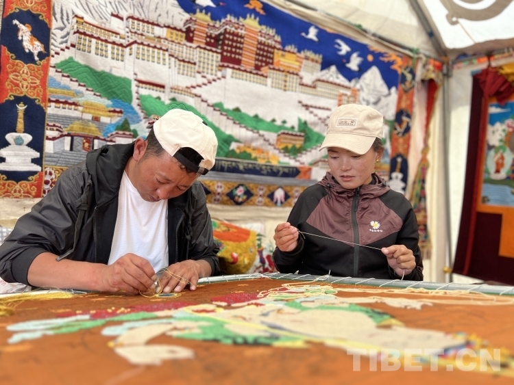 一針一線一幅畫(huà),一時(shí)一日一春秋。在潔白的帳篷里,不時(shí)有游客進(jìn)出,欣賞著夫妻二人所制作的白度母珍珠唐卡、布達(dá)拉宮堆繡唐卡、“四講四愛(ài)”刺繡唐卡等精美作品。土旦旦增與次旦卓瑪手下不僅僅是飛針走線,更是“繡出”他們的美好生活。(中國(guó)西藏網(wǎng) 記者/德吉卓瑪)