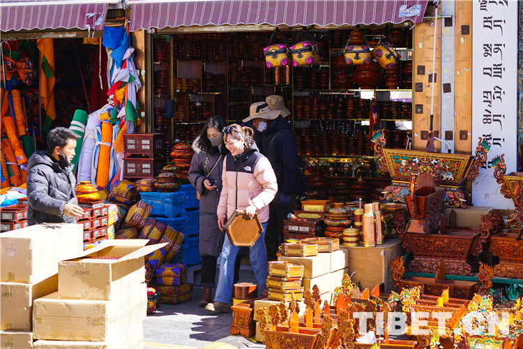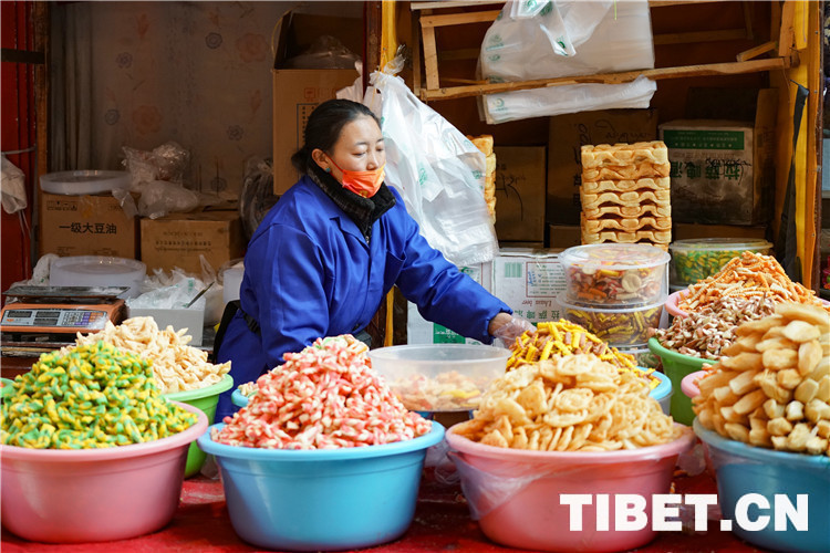 中國西藏網(wǎng)訊 藏歷新年和新春佳節(jié)即將到來,西藏自治區(qū)拉薩市大街小巷熱鬧非凡。年貨一條街、超市、商店爭相推出各式年貨,到處張燈結(jié)彩,處處洋溢著喜慶的氛圍。記者于近日來到八廓商城,通過一組照片帶大家一起感受喜迎藏歷新年的濃濃氛圍。(中國西藏網(wǎng) 記者/趙振宇 王佳豪)