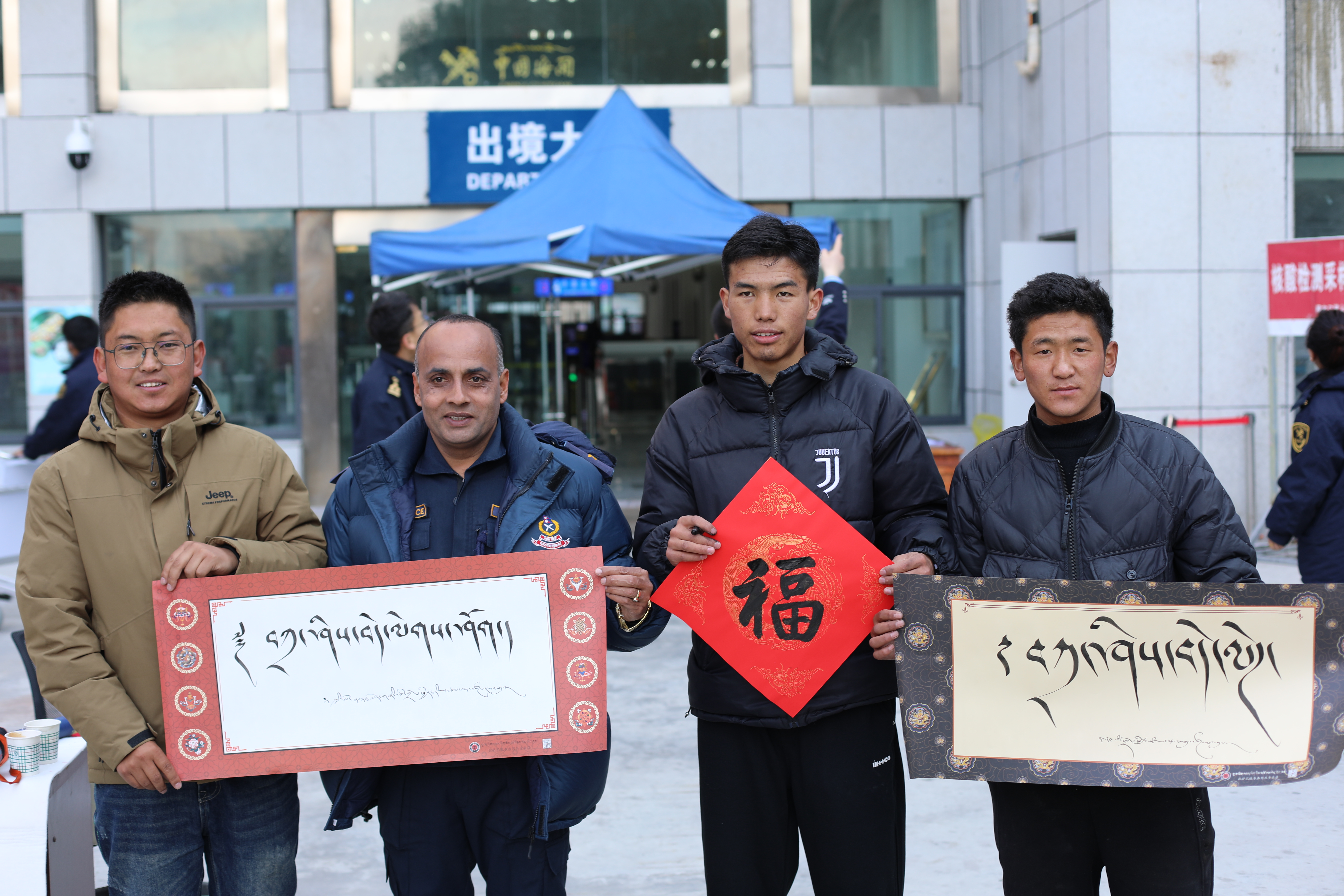 據(jù)了解,此次活動,文藝志愿者們走進海拔4500米以上的高海拔鄉(xiāng)鎮(zhèn)、深入邊境一線口岸村莊、行走里程達4000余公里,為偏遠的群眾、邊境一線干部職工、海關(guān)、邊檢站、口岸國門、游客以及市直機關(guān)單位等共贈送了書法作品和全家福4000余幅,《珠穆朗瑪》等精品圖書500余冊,學(xué)生文具200余套。通過送文藝演出、書法作品、圖書、拍全家福為主體的“三送一拍”活動,為大家?guī)砹艘粓鲐S富多彩的文化盛宴,送來了春節(jié)和藏歷新年的美好祝福。