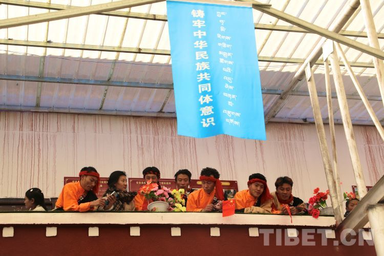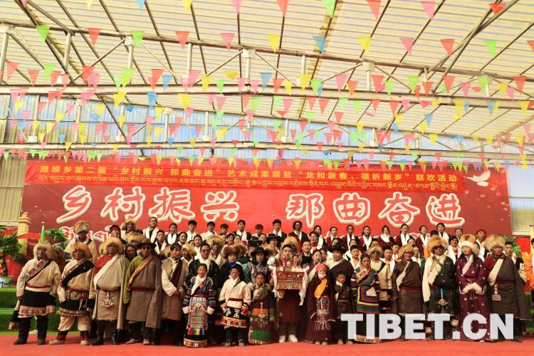 中國西藏網(wǎng)訊 2月10日,中國西藏信息中心“新春走基層”青藏線采訪組一行,來到西藏自治區(qū)那曲市安多縣灘堆鄉(xiāng),適逢當(dāng)?shù)卦谂e辦灘堆鄉(xiāng)第二屆“鄉(xiāng)村振興 那曲奮進”藝術(shù)成果展暨“龍和新春、福祈新歲”聯(lián)歡活動。采訪組一行來到鄉(xiāng)政府對面的灘堆鄉(xiāng)文化站,記者在現(xiàn)場看到許多穿著具有當(dāng)?shù)孛褡逄厣椀娜嗽诖司奂?。在好奇心的?qū)使下,經(jīng)詢問當(dāng)?shù)馗刹坎胖?,為喜?024春節(jié)和藏歷新年,感激黨和國家的關(guān)心關(guān)懷,歌頌如今來之不易的幸福生活,鄉(xiāng)村文藝隊特此精心準備了文藝節(jié)目,以嶄新的面貌和昂揚的精神展現(xiàn)新時代牧民群眾的精神風(fēng)貌和幸福生活。