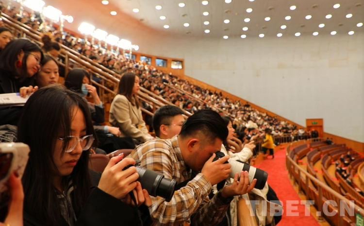圖為全國政協(xié)第十四屆全國委員會第二次會議現(xiàn)場的參會記者 攝影:王茜