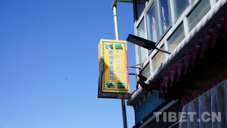 二十世紀(jì)八十年代前,整個(gè)洛扎縣的機(jī)動(dòng)車普及率很低,普通百姓出門只能乘坐馬車,從拉康鎮(zhèn)到洛扎縣縣城需要三天時(shí)間。所以在那時(shí)候,鎮(zhèn)子里的人很少去縣城,一些老人甚至一輩子也沒走出過拉康。2019年,拉康鎮(zhèn)的盤山公路全線通車,極大地改善了當(dāng)?shù)嘏c外界的交流交往,拉康鎮(zhèn)客流量逐步提升,2022年景區(qū)年旅游人次達(dá)38000余人次,政府在發(fā)展旅游業(yè)的同時(shí),投入100余萬元帶動(dòng)居民開辦家庭旅館——村民將自家空余的房間對(duì)外短租,形成民俗式的家庭旅店,德瓊家庭旅館就是這樣的一間旅館。