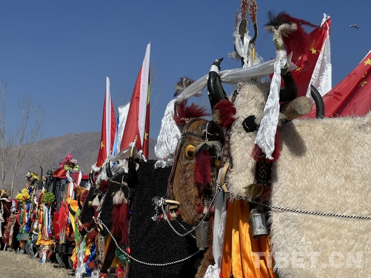 當(dāng)天上午,茶巴朗村的村民們穿著極具民族特色的節(jié)日盛裝,男人們開著裝扮一新的拖拉機,婦女們手捧吉祥切瑪,帶上青稞美酒、酥油糌粑、瓜果“卡塞”以及各類供品等來到田間地頭,迎接一年一度的“春耕節(jié)”。