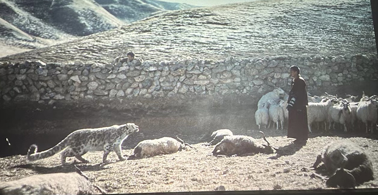影片的結(jié)尾似乎很突然,雪豹終究沒有死在受損牧人暴怒的情緒和揮舞的錘子下,在人類文明的關(guān)照下,被主動解圍,回歸雪山,與小雪豹相會相伴。只有萬導(dǎo)這種深邃包容、沉著冷靜又充滿睿智的作家、藝術(shù)家才能挖掘和表現(xiàn),這里蘊含著生命的慈悲和世人的智慧。對此,我們還有哪些拷問呢?