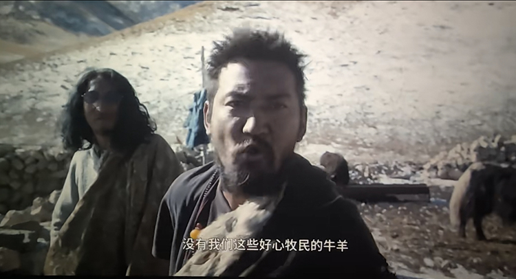 當(dāng)然,影片還出現(xiàn)了許許多多新生事物,蘋果手機(jī)、平板電腦、紅外攝像機(jī)、挖掘機(jī),微信、BBC紀(jì)錄片,古老的牧人、傳統(tǒng)的生活與現(xiàn)代社會、科技產(chǎn)品毫無距離。