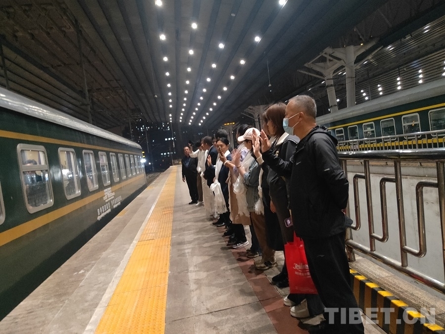 中國(guó)西藏網(wǎng)訊 4月27日晚,西藏野生動(dòng)物保護(hù)員進(jìn)京考察學(xué)習(xí)活動(dòng)圓滿結(jié)束,學(xué)員們?cè)诒本┪髡镜巧翔F路Z21次列車(chē),開(kāi)啟返回家鄉(xiāng)的路程。北京建藏援藏工作者協(xié)會(huì)、中國(guó)鐵道旅行社集團(tuán)有限公司、中國(guó)西藏網(wǎng)、中華網(wǎng)等參與此次學(xué)習(xí)考察活動(dòng)的組織單位到北京西站送別。