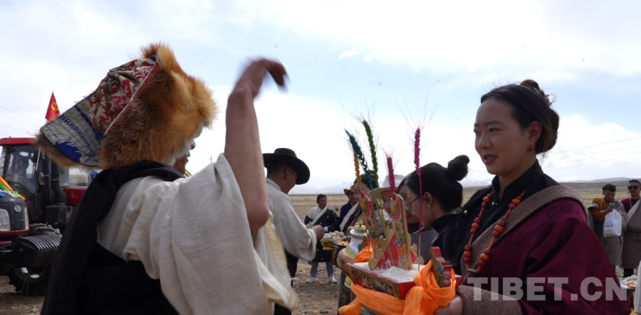 圖為春耕春播開(kāi)始前向犁手敬切瑪祈愿豐收