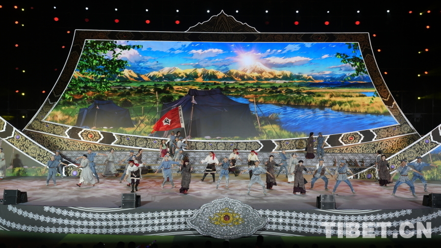 圖為極具藏族特色的火鐮造型舞臺 攝影 鄒慧