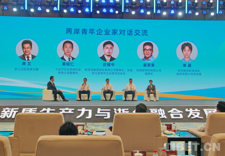 開幕式上,阿里巴巴集團董事會主席蔡崇信,新華三集團總裁兼CEO于英濤,富士康工業(yè)互聯(lián)網(wǎng)股份有限公司董事長、總經(jīng)理鄭弘孟,臺灣工業(yè)總會副理事長、敏實控股董事會主席秦榮華等兩岸企業(yè)家代表圍繞“新質(zhì)生產(chǎn)力與浙臺融合發(fā)展”進行了主旨演講。納獅新材料董事長袁安素、寧波齊芯半導(dǎo)體科技有限公司首席執(zhí)行官黃昭仁、新鳳鳴集團董事長莊耀中、杭州新劍機電傳動股份有限公司總經(jīng)理單晨等兩岸青年企業(yè)家圍繞“以科技創(chuàng)新、產(chǎn)業(yè)與人才合作助推加快形成新質(zhì)生產(chǎn)力”開展了對話交流。