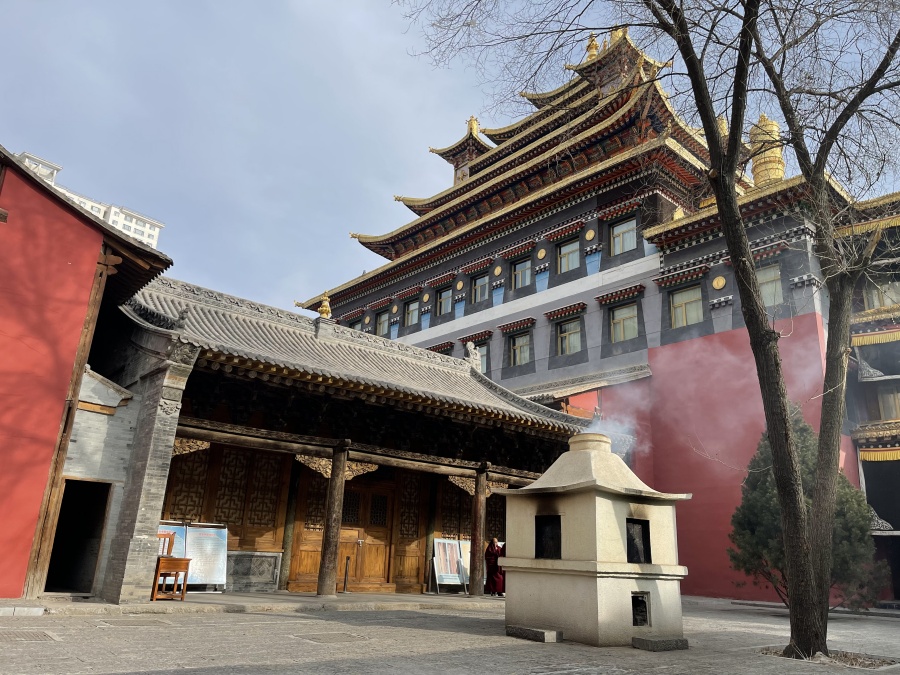 宏覺寺地處西寧市城中區(qū)南大街東側(cè),即今宏覺寺街路北,街以寺名。據(jù)《西寧新府志》載:寺建于明洪武二十三年(1390),原名“妙華庵”,明永樂十年敕賜寺名曰“弘覺”。為西寧古城名寺。面積約3000平方米,一進三院。有山門、護法殿,前院兩側(cè)有鐘鼓樓,中院有三大菩薩殿,后院為靜室、林園。宏覺寺殿宇壯麗、林園幽靜,為鬧市中心的一方凈土。在明代該寺頗受朝廷重視,香火旺盛,信徒眾多。其住持僧索南嘉措被永樂皇帝封為國師,多次進京朝覲,得到大量賞賜,故聲名遠播。