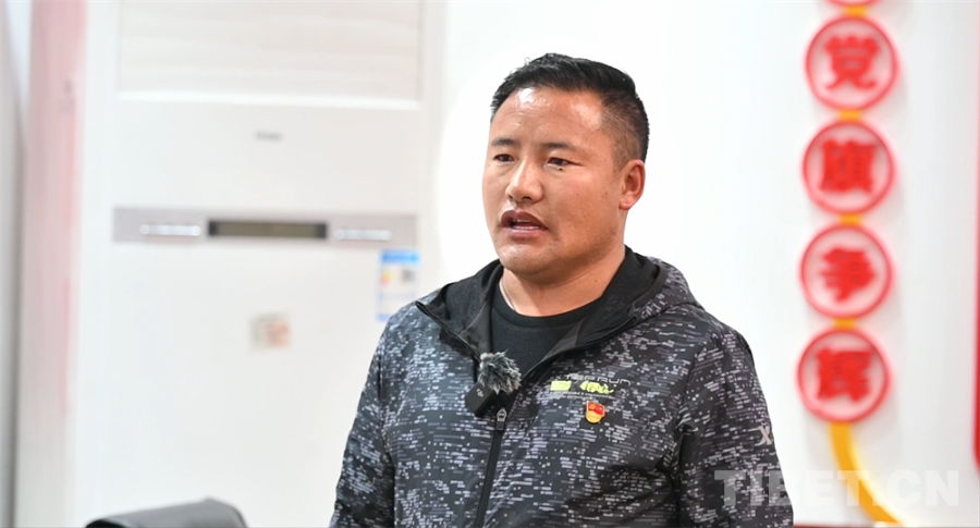 圖為昌都市洛隆縣第二小學(xué)教師斯郎曲扎接受采訪