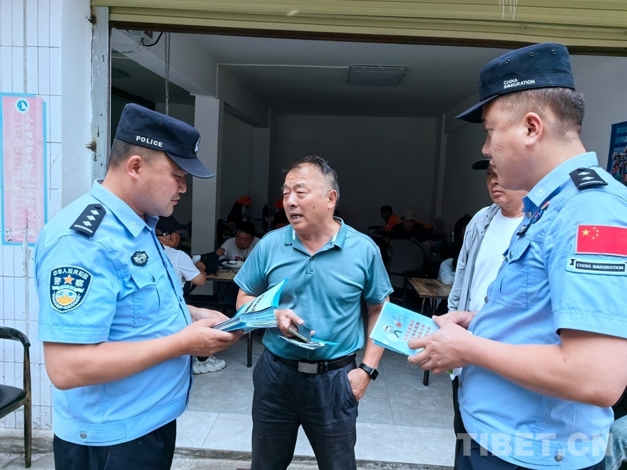 圖為聶拉木出入境邊防檢查站民警向口岸個體戶宣講禁毒知識 攝影:軒紅偉