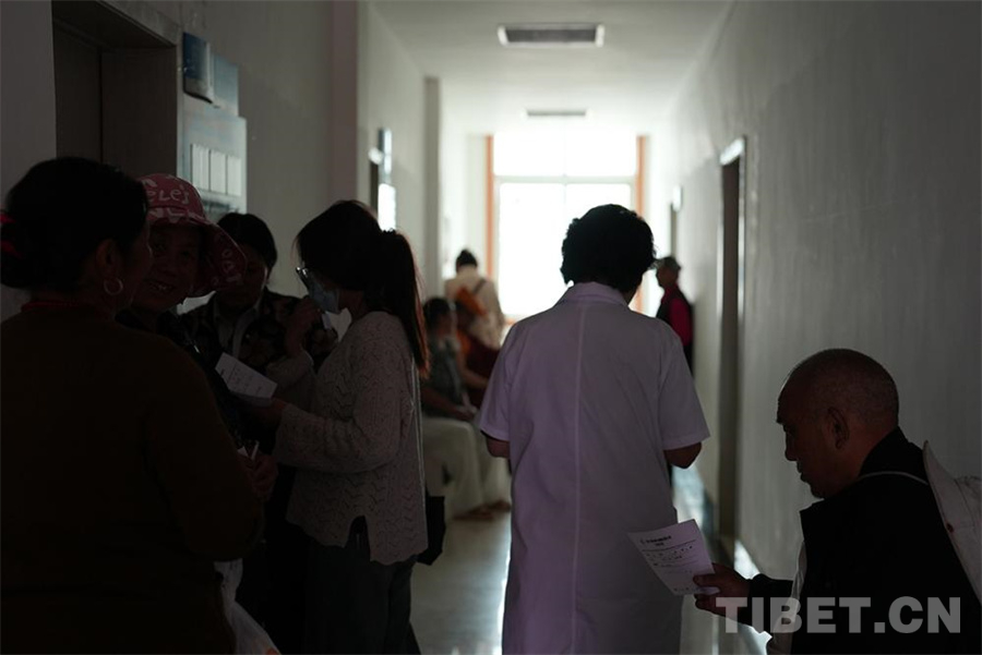圖為巴塘縣群眾在預(yù)檢分診臺(tái)排隊(duì)領(lǐng)取病科條 攝影:姚浩然