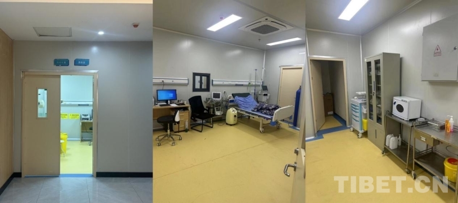 圖為拍攝于7月9日夜間的四川省甘孜州石渠縣洛須鎮(zhèn)石渠縣人民醫(yī)院第二醫(yī)療區(qū)急救室門外(左)、病床(中)和一隅(右)。7月8日中午的搶救就是在這里進(jìn)行的 (石渠縣人民醫(yī)院第二醫(yī)療區(qū)供圖拼版)