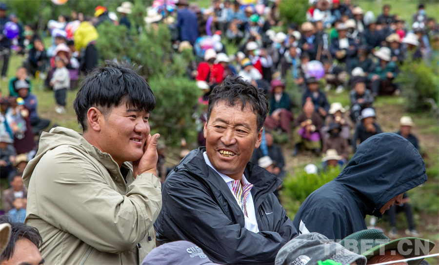 圖為活動現(xiàn)場的農(nóng)牧民群眾觀看演出和比賽