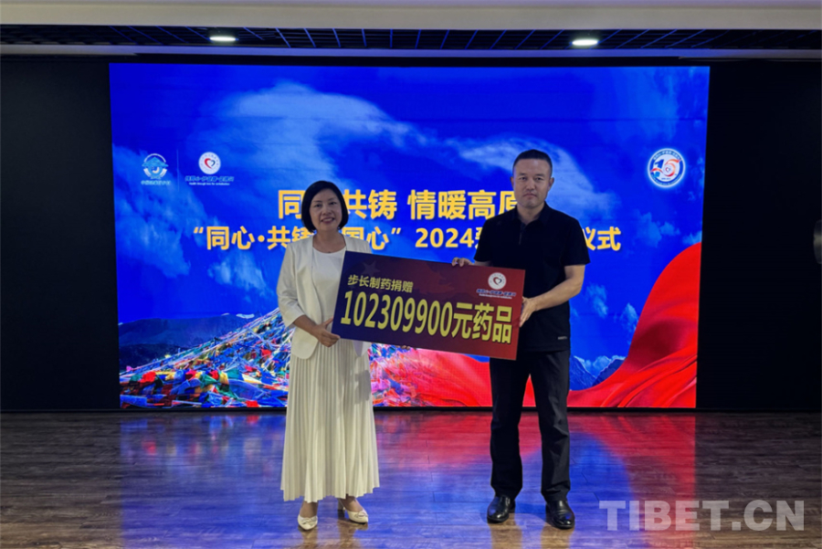 中國(guó)西藏網(wǎng)訊 8月5日,同心共鑄·情暖高原“同心·共鑄中國(guó)心”2024愛(ài)心捐贈(zèng)儀式在北京舉行。步長(zhǎng)制藥集團(tuán)通過(guò)北京同心共鑄公益基金會(huì)向西藏、四川、云南、甘肅、青海等地的17個(gè)地市州的148個(gè)縣,無(wú)償捐贈(zèng)呼吸道疾病防治藥——“宣肺敗毒顆粒”1.78萬(wàn)箱,共171.3萬(wàn)盒,價(jià)值1.02億元。