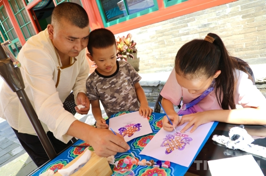 8月9日,中華民族優(yōu)秀文化體驗項目輪展活動,在北京中華民族共同體體驗館(原蒙藏學校舊址)舉行。國家級非物質文化遺產(chǎn)代表性項目熱貢藝術省級代表性傳承人、唐卡畫師扎西尖措?yún)⒓恿舜舜握寡莼顒?,將一場精彩的唐卡藝術體驗課帶到了首都。