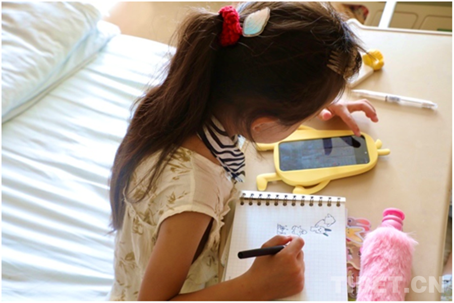記者了解到,澤多家里共有4個孩子,小澤丹在四個兄弟姐妹中排行老三,也是家中最好學的孩子。在醫(yī)院病房里,小澤丹拿著一本自己專屬的筆記本,反復在上面寫著自己的漢文和藏文名“澤丹(????????)”。有時她也會照著手機里的圖片,一筆一劃有模有樣地勾勒出各種圖案。