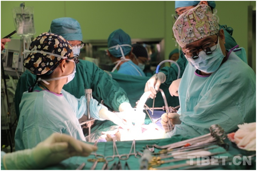 圖為醫(yī)療專家團隊正在為患兒實施手術 攝影:龍真多吉