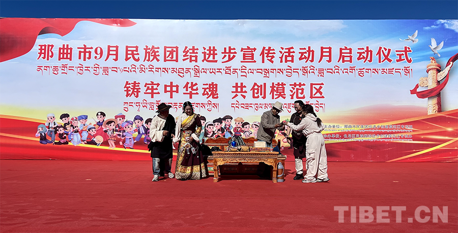 啟動(dòng)儀式結(jié)束后,色尼區(qū)文藝團(tuán)為現(xiàn)場觀眾獻(xiàn)上了那曲市民族團(tuán)結(jié)進(jìn)步主題歌曲《我們的和美羌塘》《羌塘普古》《國旗下的牧民》等一系列精彩的文藝表演。其中,《羌塘普古》以其別具特色的藏族舞蹈,展現(xiàn)了那曲高原的壯麗與人民的豪邁;小品《中華民族一家親》通過生動(dòng)的故事情節(jié)和真摯的情感表達(dá),深刻詮釋了中華民族多元一體的文化內(nèi)涵和各民族之間血濃于水的深厚情誼?,F(xiàn)場笑聲不斷、氣氛活躍、熱鬧非凡,充分展示了那曲市民族團(tuán)結(jié)進(jìn)步的良好氛圍。(中國西藏網(wǎng) 記者/楊加才讓 旦曲)